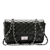 Designer Quilted Chain Faux Leather Shoulder Hand Bag Cross Body Handbag Purse Black